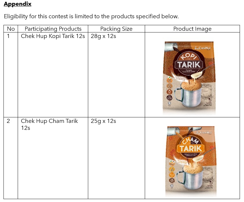 3.1 Kindly refer to the appendix of these Terms for the list of the Participating Products for the Contest.